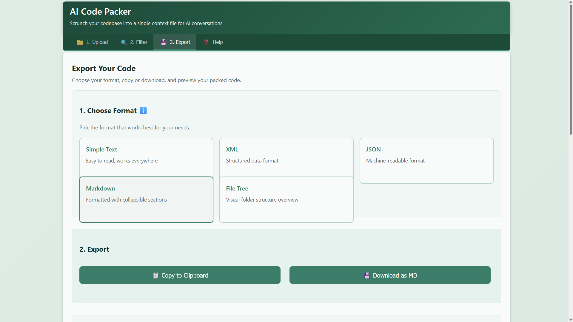 Turns your entire project into a single, AI-ready file that you can instantly share with any AI assistant. No more tedious file-by-file copying. No more losing context halfway through.