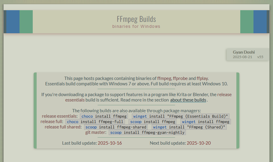 - It downloads FFmpeg from https://www.gyan.dev/ffmpeg/builds/