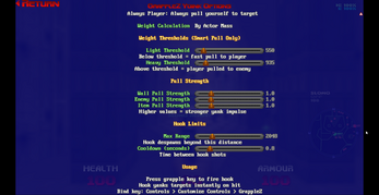 An advanced mini mod for Doom that gives player the grappling hook ability. I can pull myself at walls/floors/ceilings and I can pull monsters/barrels towards me too.