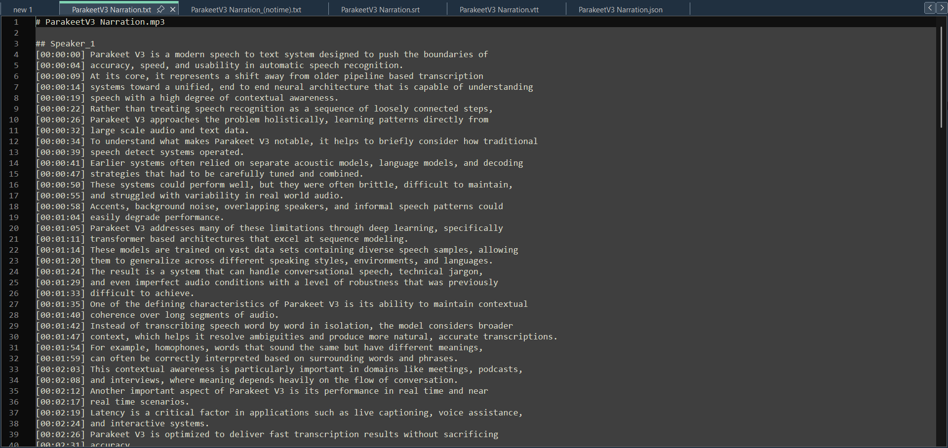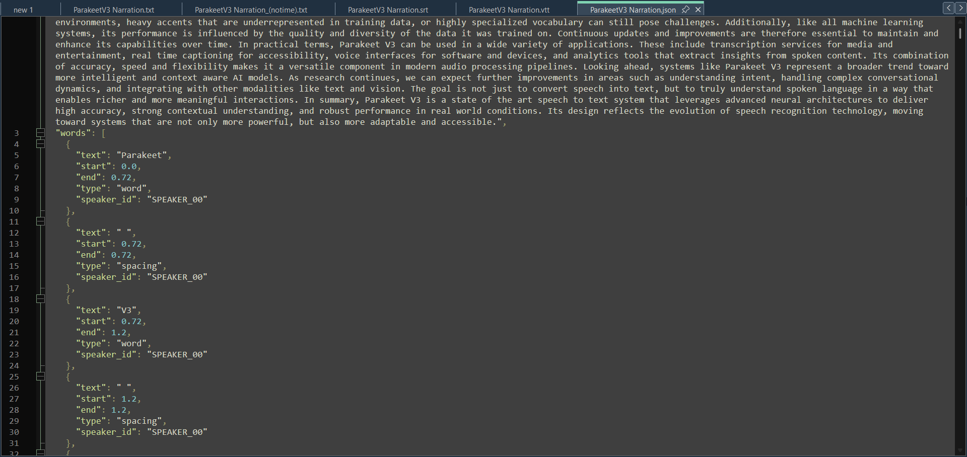 - Full JSON with per-word timestamps for devs and pipelines